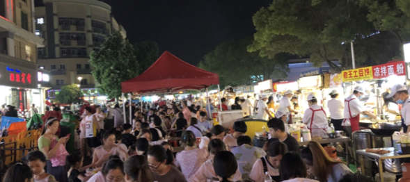 The successful case of the stall economy in Yiwu is called Santing Road Night Market. The huge market locates in the city center, with 763 stalls. From 6 pm to 2 am next morning, there are tens of thousands of customers coming here for eating, shopping, or just hanging around, which is the most iconic image of the city’s nightlife. It is crowded but well-ordered. The most amazing thing is that it is just a clean and normal street at day time, without any clues of the night market.