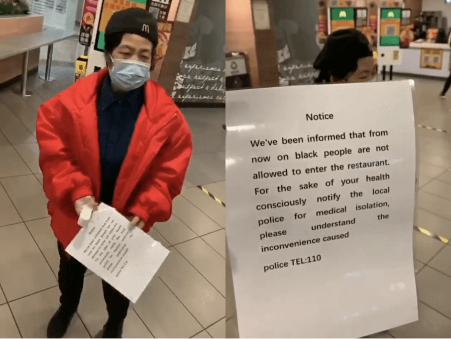 2020年4月,在国内外新闻媒体及社交平台上,流传着一段广州某麦当劳餐厅禁止非洲人进店的视频,引起了网络上激烈的讨论。