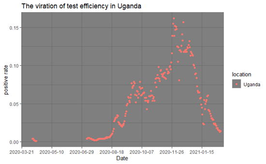 In this article, key indicators reflecting the trends of the pandemic in Uganda were collected, and the data are presented in figures plotted by R. With these figures, we aim to analyze the factors contributing to the trend of the pandemic in Uganda and the approach which Uganda government applied to respond to the outbreak of the virus. Finally, the case of prevention and the control of the COVID-19 in Uganda will be evaluated and lessons learned from the case will be illustrated.