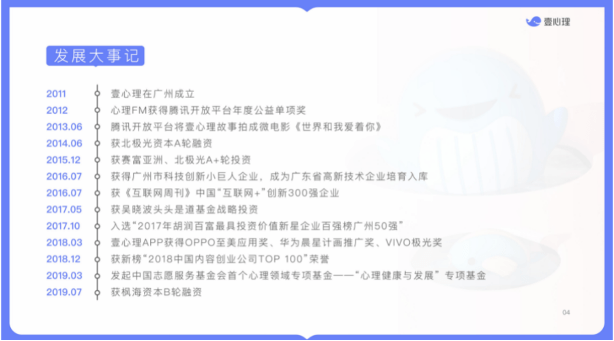 “Xinlin001(壹心理), launched in July 2011, has attracted a wide range of audiences through the Internet. Adhering to the core concept of “The World and I Love You,” Xinlin001 has 22 million registered users. It provides five hero products and services: consultation, psychology courses, mental quizzes, FM, and e-commerce. By the end of July 2019, the platform has more than 500 psychological counselors and nearly 200 paid courses. More than 200 psychological institutions and more than 200 psychological authors have established close cooperation with this platform. “[viii]