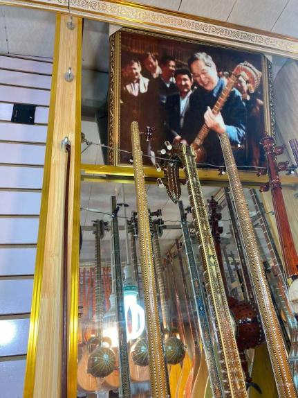 做热瓦普的大叔是该手工艺品的第四代传承人。他做琴做了40年,被授予了“喀什民间大师”的称号。政府给他每月发放400元补贴,鼓励他坚持自己的爱好-做琴。这可以维持他们的日常生活开销。