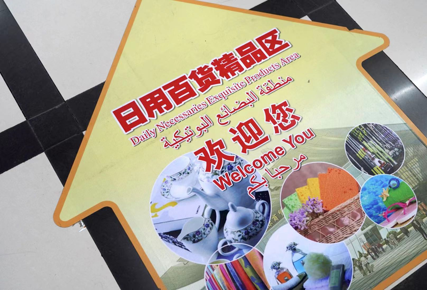 (Signs in Chinese, English, and Arabic in the Yiwu International Trade City)