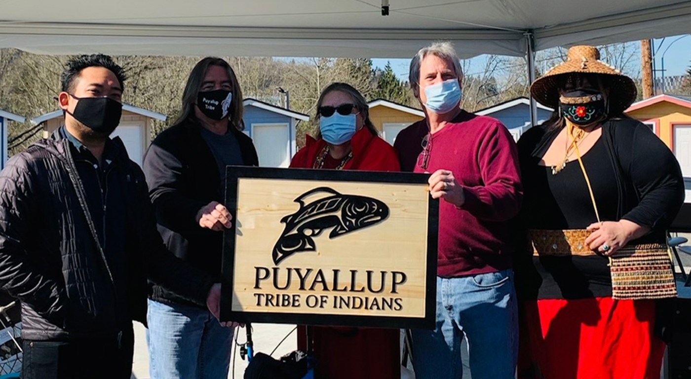 The land was blessed last February in a ceremony by the tribe before construction began. Tribal members danced, drummed, and sang. Puyallup Culture Director Connie McCloud offered a prayer that the land be a place where homeless tribal members are welcomed and helped to heal.
