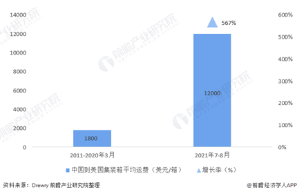 国际航运研究及咨询机构(Drewry)的调查数据显示,在疫情前上海至洛杉矶的平均运费不到每个集装箱1800美元。然而,疫情开始后,从中国运向欧洲以及美国西海岸的运费上涨到了惊人的每个集装箱12000美元的费用。有部分公司表示,在货物装船时被收取了每个集装箱20000美元的天价。