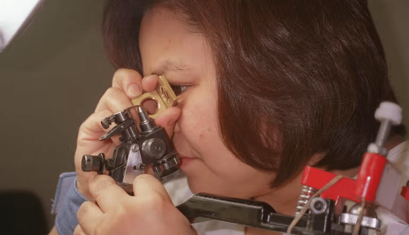 A woman examines a diamond she is in the process of cutting and polishing in Yellowknife, N.W.T. in a photo from 2003. (CP PHOTO/Bob Weber)