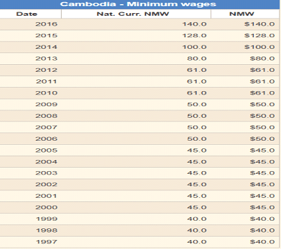 尽管柬埔寨最低工资逐年上调,但与中国薪资仍有差距。